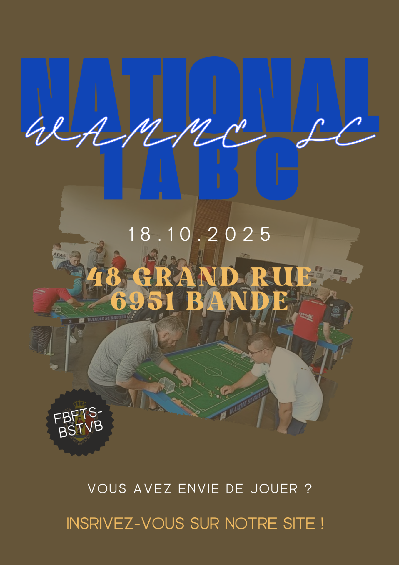 Un tournoi national N1A comptant pour le classement du Super-prestige FBFTS se déroulera le samedi 18 octobre 2025 à « La petite Europe » au
